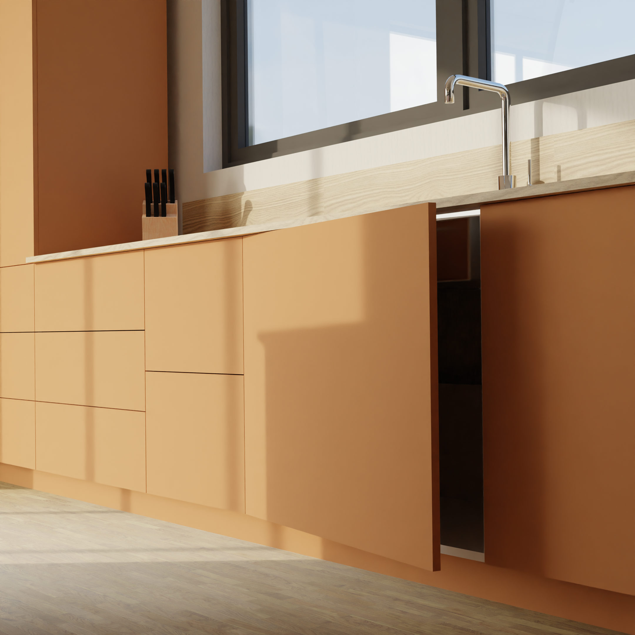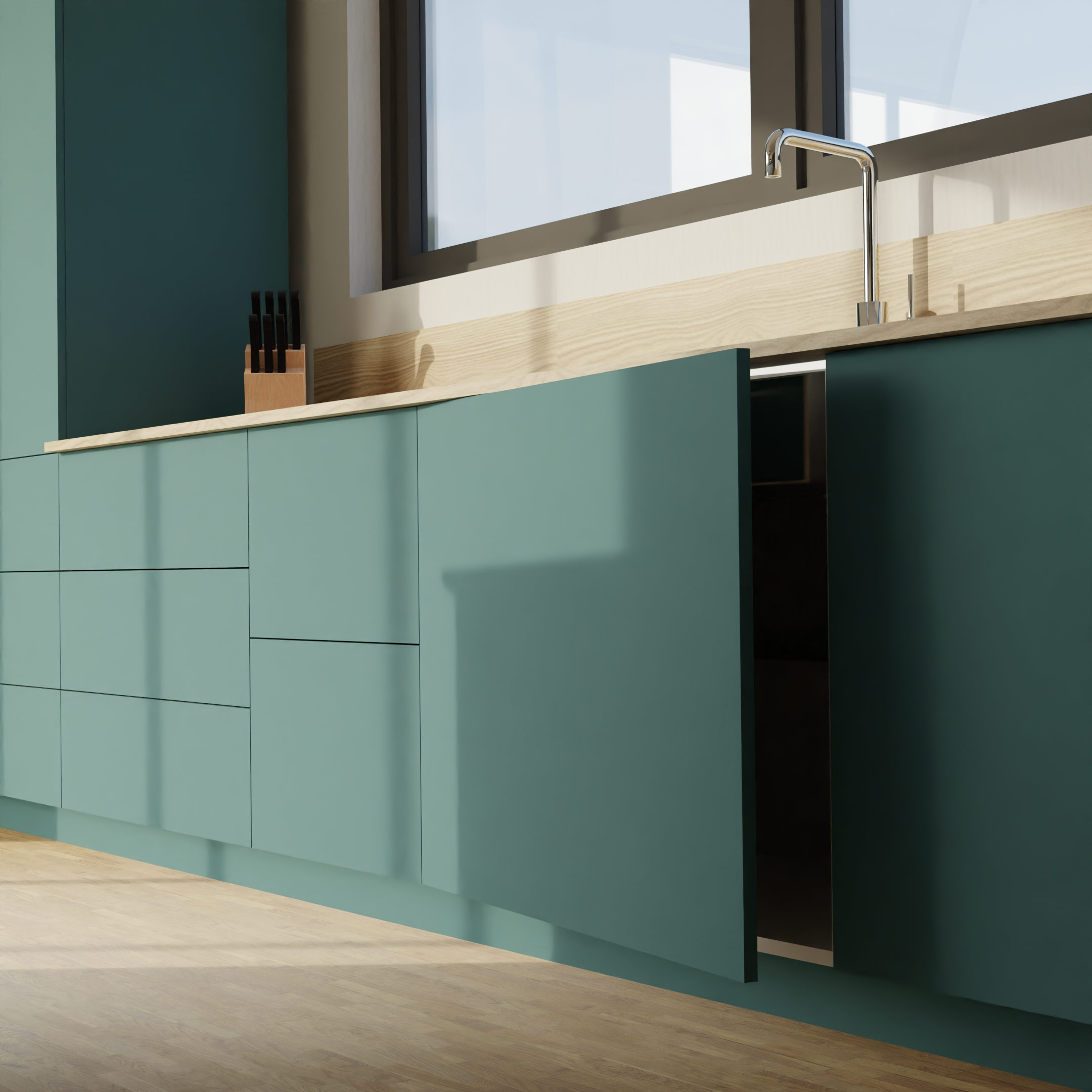Nos portes de cuisine, fabriquées sur mesure, s’adaptent à toutes les marques et à toutes les dimensions de caissons, sans exception.