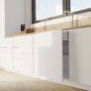 La couleur Blanc Craie Laqué Extra Mat Anti-Traces de Doigts pour une façade de cuisine combine l’élégance d’une teinte claire avec la praticité d’un fini mat. Cette finition spéciale minimise les traces de doigts, garantissant une surface propre et impeccable, même dans les zones les plus utilisées.