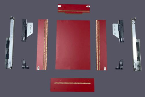 Pour faciliter l’installation de vos tiroirs, un kit de montage comprenant un gabarit de perçage, une mèche et sa butée est inclus.