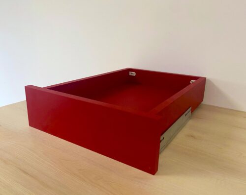 Redonnez du style à votre cuisine avec des tiroirs bois sur mesure. Vos façades de tiroirs, en mélaminé de 19 mm d’épaisseur, gardent leur qualité d’origine, avec deux faces identiques et un chant assorti de 0,8 mm d’épaisseur. Ce type de tiroir est tout en bois avec l’intérieur de la couleur de la façade.